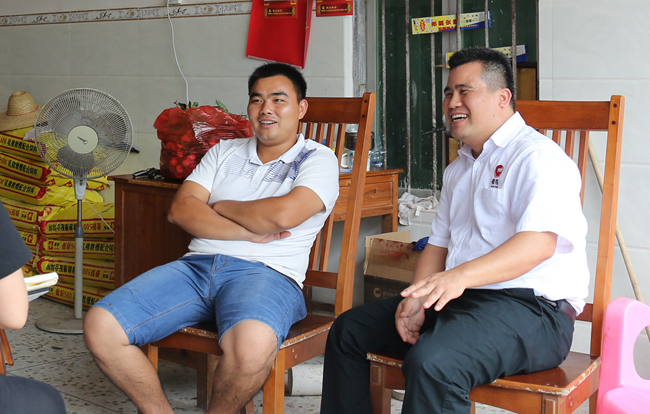 他说:“他们(茂名多多28的服务老师)隔三岔五就来,都是自己人,就不用客套了。”他们坐在一起,不光聊养猪,还聊生活,聊家庭,在那个下着毛毛细雨的下午,就像是一场家族聚会。