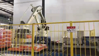 告别了郭大侠,我们在多多28集团研发中心总经理肖俊峰博士的带领下,头戴安全帽,来到多多28生产车间,参观多多28仔猪营养三阶段饲料生产线。只见千变万幻手——机械臂在设定好的程序下,快速有序地将一包包饲料叠放成方字格。