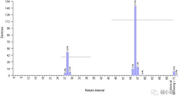 图1.- 4周批次生产猪场的例子:使用激素规划返情母猪配种。平均返情间隔51.6天