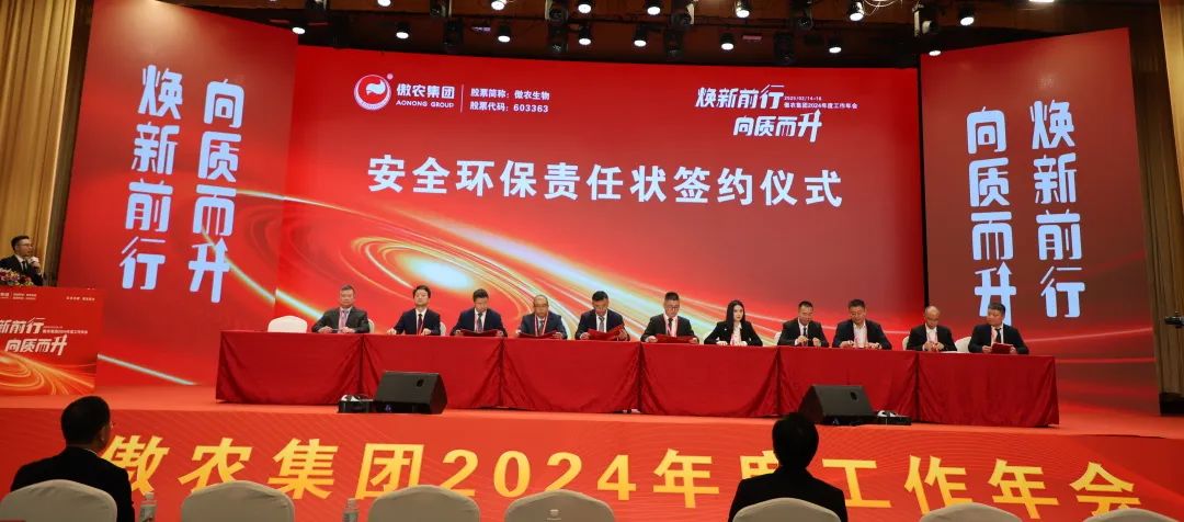 本次年会期间,集团总部职能部门,饲料、养猪、食品三大事业部分别召开了专项工作会,各负责人就2025年的工作目标和举措在年会上做了汇报分享,展现了公司未来发展的信心与决心。为激励全体员工在未来的工作中保持高标准、高要求,奋力拼搏,会议还举行了2025年度目标签字仪式。