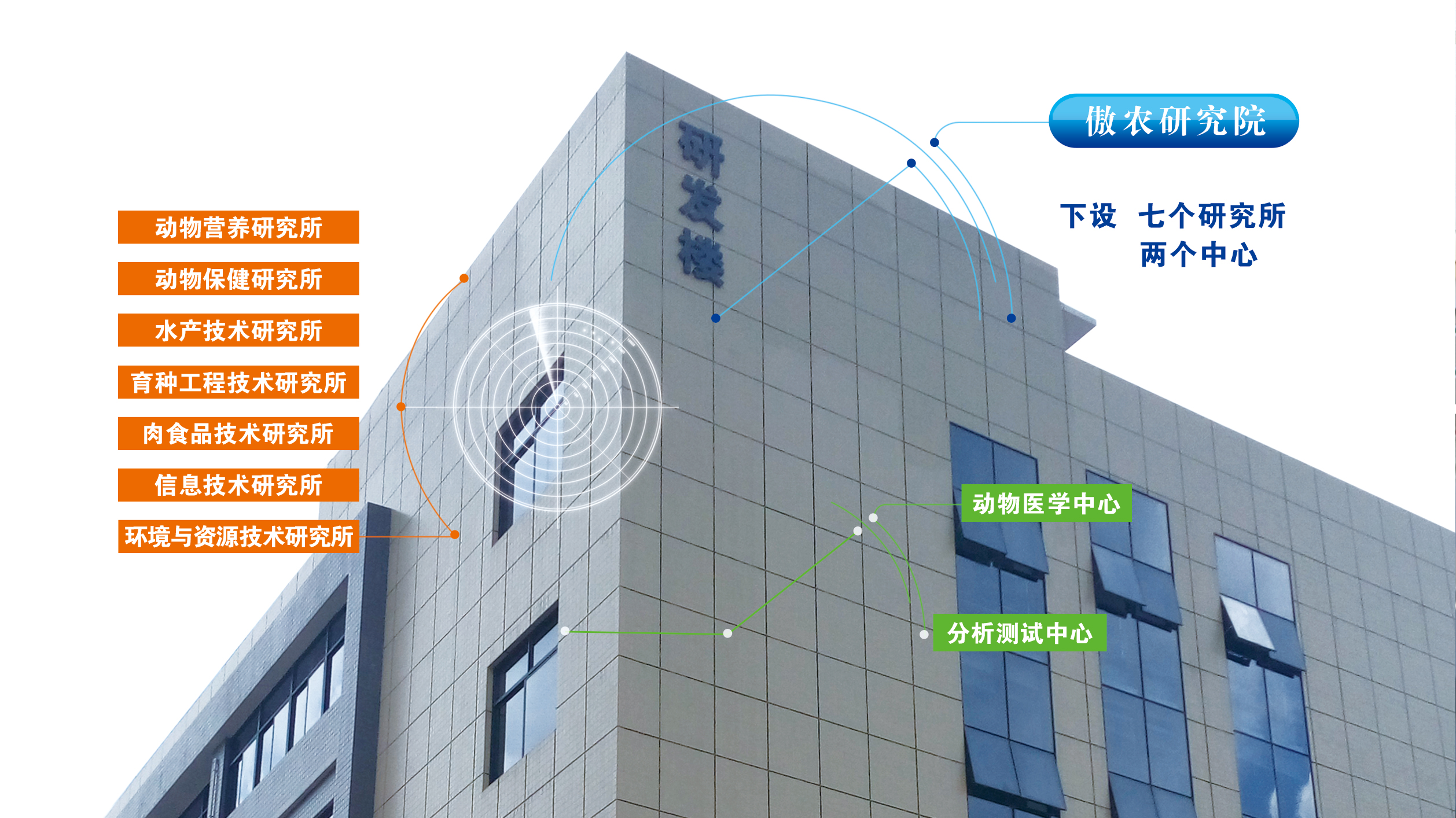 集团研究院下设动物营养研究所、动物保健研究所、水产技术研究所、育种工程技术研究所、肉食品技术研究所、信息技术研究所、环境与资源技术研究所、动物医学中心分析测试中心等机构,为集团的发展注入强劲的智慧和技术动力。